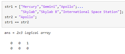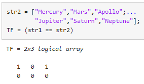 관계 연산자 ==와 ~=를 사용하여 string형 배열이 서로 동일한지 비교할 수 있습니다.