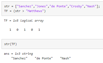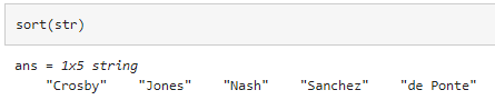 다른 유형의 배열을 정렬할 때와 마찬가지로 sort 함수를 사용하여 string형 배열을 정렬할 수 있습니다. MATLAB은 텍스트 조각의 문자를 검사할 수 있는 함수도 제공합니다.
