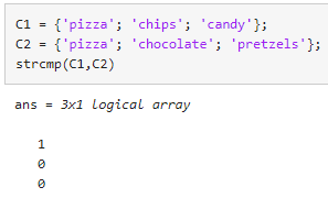 strcmp는 셀형 배열과 크기가 동일한 논리형 배열을 반환합니다.