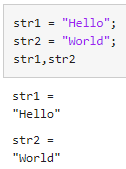 string형 스칼라를 두 개 만듭니다. 큰따옴표를 사용하여 string형을 생성할 수 있습니다.