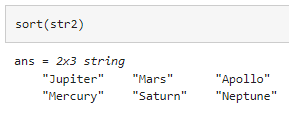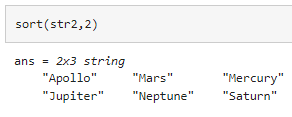 2×3 string형 배열을 정렬합니다. sort 함수는 각 열의 요소를 개별적으로 정렬합니다.