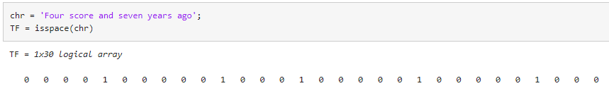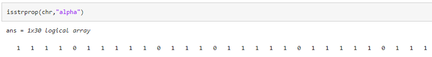 isstrprop는 str의 문자 수와 동일한 길이의 논리형 벡터를 반환합니다.