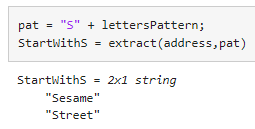“S” 문자를 지정하기 위한 문자열과 해당 문자 뒤의 추가 문자를 찾기 위한 lettersPattern을 사용합니다.