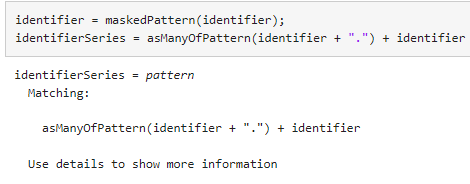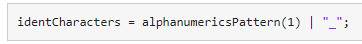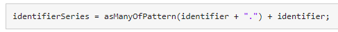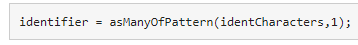 이제 asManyOfPattern을 사용하여 한 개 이상의 identCharacters 연속 인스턴스와 일치되도록 합니다.