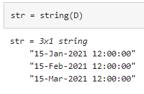 string 함수를 사용하여 datetime형 배열 또는 duration형 배열을 변환하는 경우