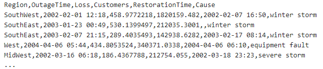 outages.csv의 첫 번째 라인에는 열 이름이 있습니다.