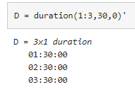 duration형 배열을 생성하려면 duration 함수를 사용하는 방법이 있습니다.